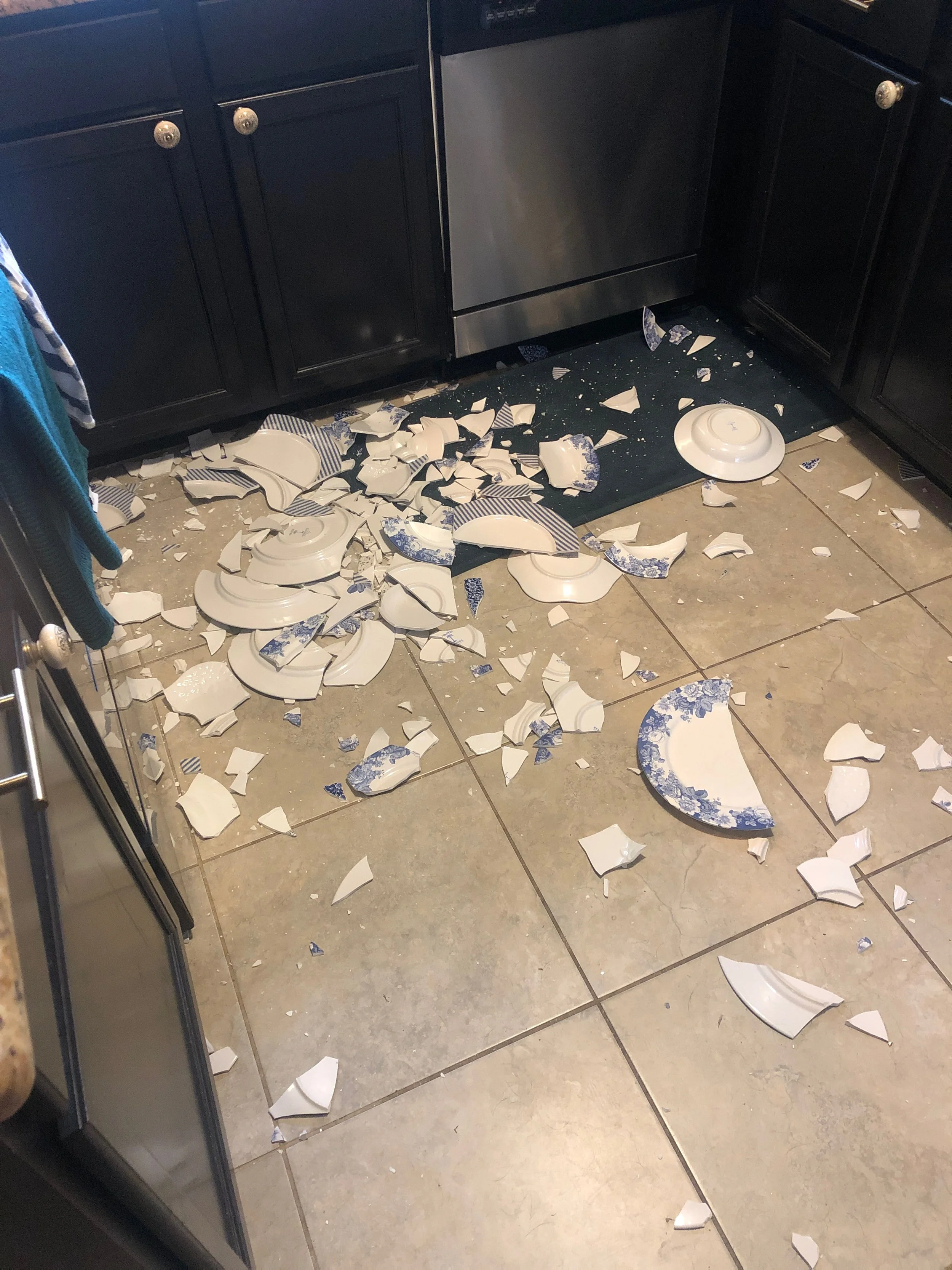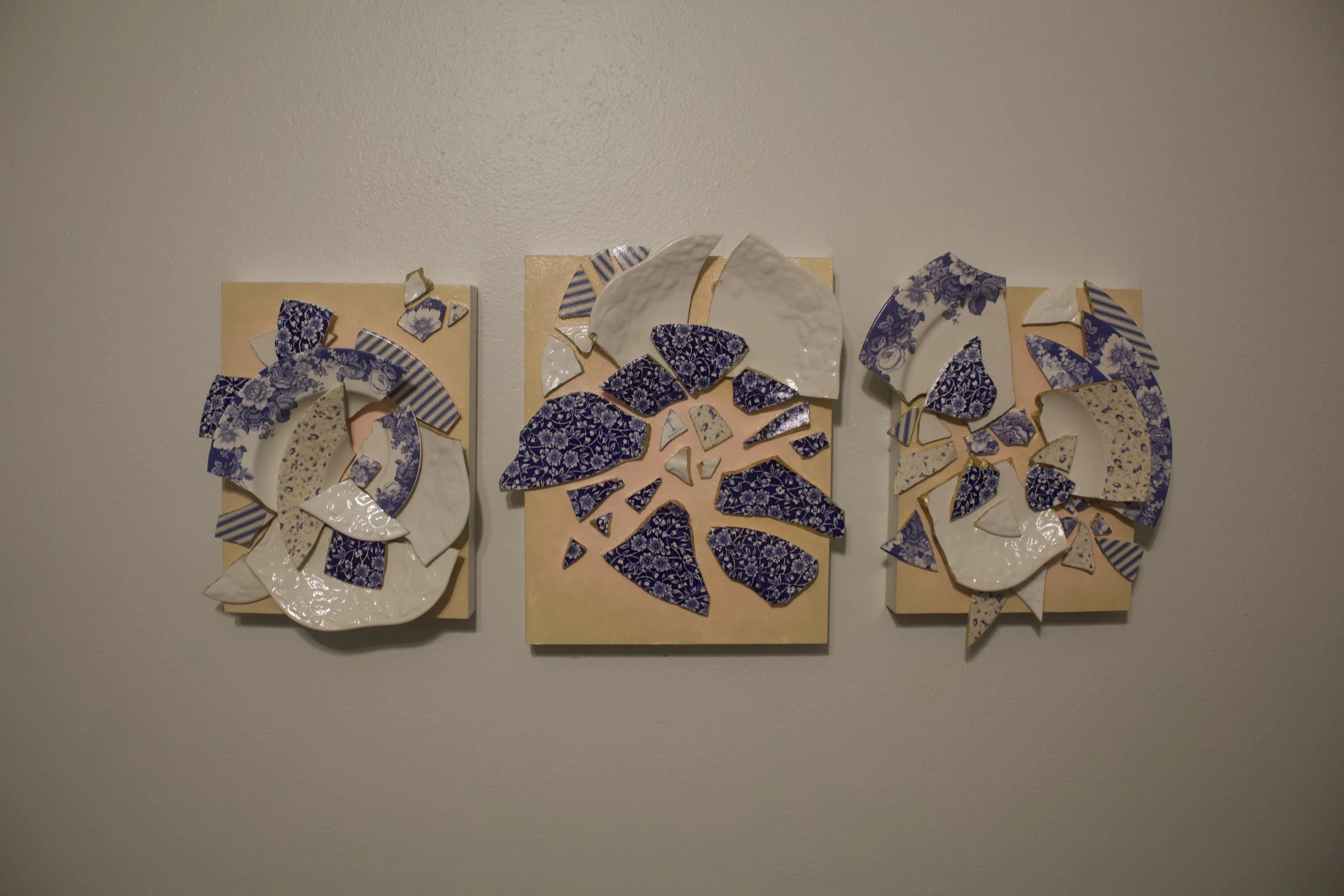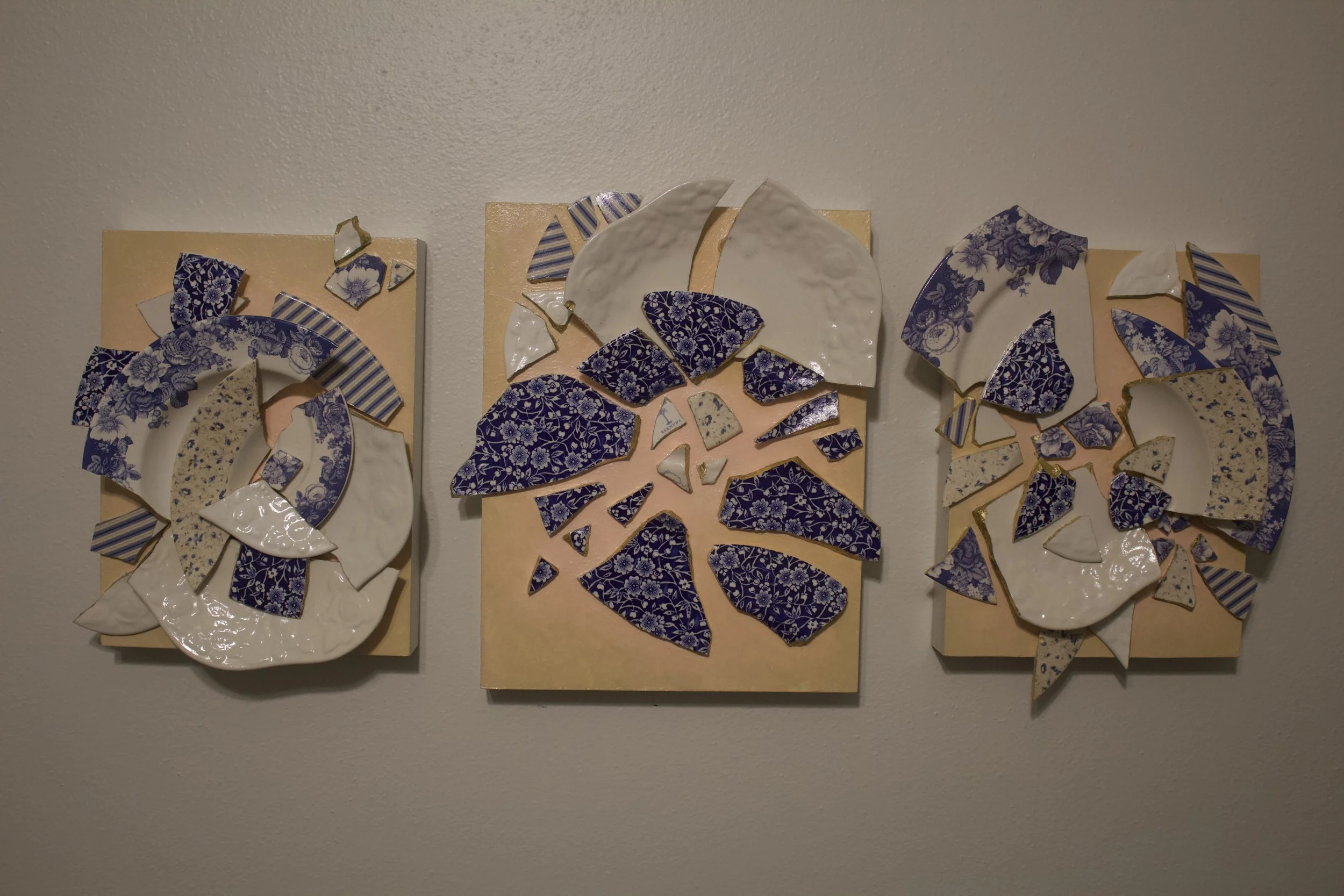 Gilded Trio was a commissioned triptych for which I was tasked with creating a mixed media piece from a collection of irreplaceable, shattered porcelain plates and bowls.